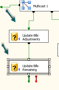 In one SQL Server Integration Services (SSIS) package Data Flow, I have two OLE DB Commands that have to run one after the other.